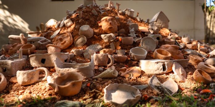 “Para mim, a questão era como invocar o conhecimento ancestral, o know-how ancestral do meu povo, mas também dos povos indígenas, para criar essa conversa. Porque antes da colonização, a maneira como os povos indígenas tratavam a Terra e também a maneira como as pessoas na África tratavam a Terra era realmente saudável. O capitalismo chegou e destruiu todo esse sistema ecológico”, avalia.