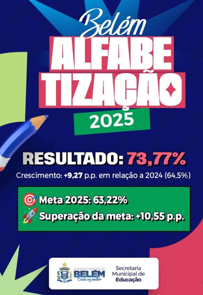 Com um trabalho sério voltado à alfabetização na idade certa, o município de Belém, através de diversas iniciativas consolidadas, superou a meta estadual e nacional alcançando o percentual de 73,77% de crianças alfabetizadas. Na última semana, a secretaria de educação aplicou o Provinha Belém – uma ação permanente que representa cuidado, acompanhamento e valorização dos alunos.