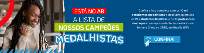 O resultado desse esforço coletivo se traduz em 10 mil estudantes medalhistas, reconhecidos com ouro, prata, bronze e menção honrosa. A lista também destaca os 27 finalistas estaduais que representarão seus estados na Semana Olímpica da ONEE 2025, que acontecerá entre os dias 4 e 6 de novembro, em Brasília (DF), ao lado dos 27 professores destaques.