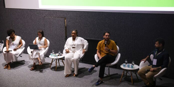 A ministra da Cultura, Margareth Menezes, durante divulgação de pesquisa sobre hábitos culturais, no Mercado das Indústrias Criativas do Brasil (MICBR+Ibero-América) – Foto: Tomaz Silva/Agência Brasil