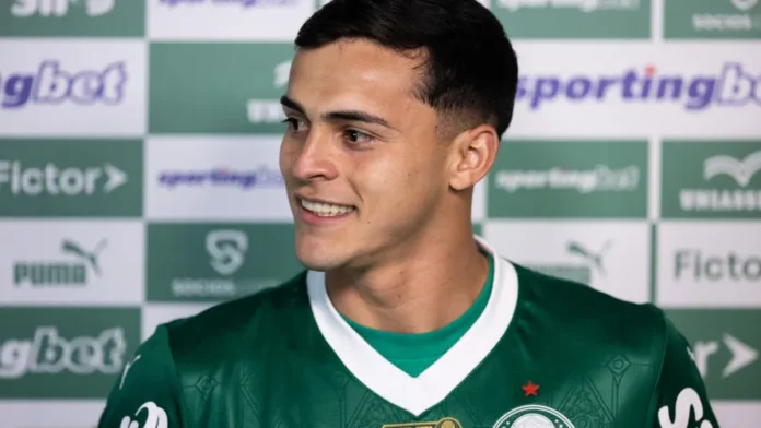 Estêvão e Premier League: “Um jogador muito importante aqui e vai para uma liga muito competitiva. Conheço a liga, estava na Nottingham. Agora chego bem aqui e sei o que significa o Palmeiras. O Palmeiras briga por tudo, a exigência é grande”.