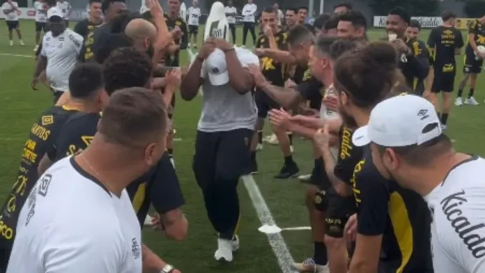 Para compensar o deslize, o segurança precisou atravessar o chamado “corredor da morte”, formado pelos atletas do Santos, que o cercaram e brincaram com tapas e empurrões leves enquanto ele passava. O clima foi de descontração e risadas entre os jogadores.